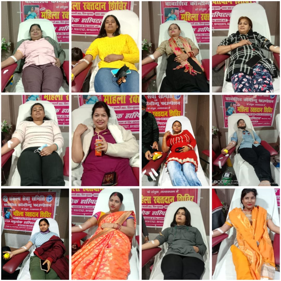 कानपुर (रीजनल एक्स्प्रेस)। संकल्प सेवा समिति एवं बाबाशिव कंटिन्यू फाउंडेशन के संयुक्त तत्वाधान में मधुलोक हॉस्पिटल में महिला रक्तदान शिविर आयोजित किया गया।