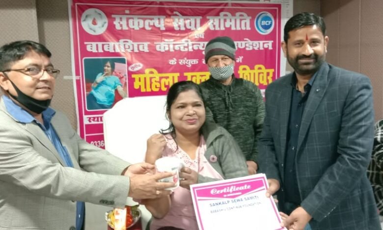 संकल्प सेवा समिति द्वारा महिला रक्तदान शिविर का आयोजन