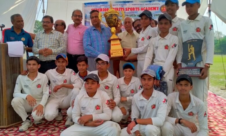 कानपुर(रीजनल एक्स्प्रेस)। सुपीरियर स्प्रिट्स स्पोट्र्स एकेडमी द्वारा आयोजित चतुर्थ पं. कन्हैया लाल त्रिवेदी मेमोरियल अंडर-14 क्रिकेट टूर्नामेंट फॉर सुपीरियर कप के आज खेले गये खिताबी मुकाबले में वासंती देवी एकादश ने हरा पत्ता एकादश को 6 विकेट से हराकर ट्राफी पर कब्जा जमाया। कानपुर साउथ मैदान में खेले गये मुकाबले में हरा पत्ता एकादश ने रंधीर सिंह (49), दिव्यांशु प्रताप सिंह (34) के रनों की मदद से पहले खेलकर 33.5 ओवर में 163 रनों का स्कोर खड़ा किया।वासंती देवी से साहिल श्रीवास्तव और आदित्य कुमार ने चार-चार विकेट लिये।जवाब में पृथ्वीराज चौहान (87) के नाबाद अद्र्धशतक की बदौलत वासंती देवी एकादश ने 25.5 ओवर में चार विकेट पर लक्ष्य हासिल कर खिताब अपने नाम किया। मैचोपरांत मुख्य अतिथिं इनकम टैक्स कमिश्नर डा.अनिल कुमार सिंह ने विजेता टीमों को ट्राफी देकर सम्मानित किया। विशिष्ट अतिथि एस.एन.सिंह,गोपाल खन्ना ने पृथ्वीराज को टूर्नामेंट के सर्वश्रेष्ठ बल्लेबाज तथा साहिल श्रीवास्तव को सर्वश्रेष्ठ गेंदबाज का पुरस्कार दिया। इस अवसर पर अरविन्द त्रिवेदी, पीसी श्रीवास्तव,सर्वेशतिवारी,आर.के.त्रिपाठी,योगेश ठाकुर, शरद अग्रवाल,आर.सी.त्रिवेदी,संजय तिवारी,अहमद अली खान तालिब,विकास सिंह,प्रमोद0 पाटिल,हिमांशु शुक्ला,श्रांजुल तिवारी,उत्कर्ष मौर्य,अनिल रावत, डा.हरिश्चंद्र पाठक,खुर्रम,डा. अभिषेक बाजपेयी आदि मौजूद रहे।
