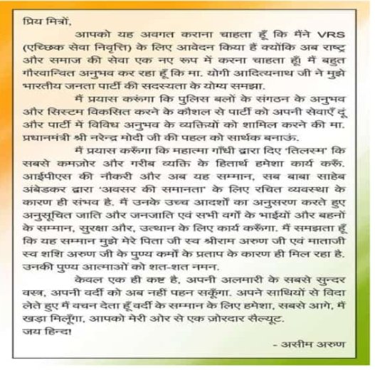 1994 बैच के आईपीएस अधिकारी असीम के पिता स्वर्गीय श्रीराम अरुण DGP रह चुके हैं।