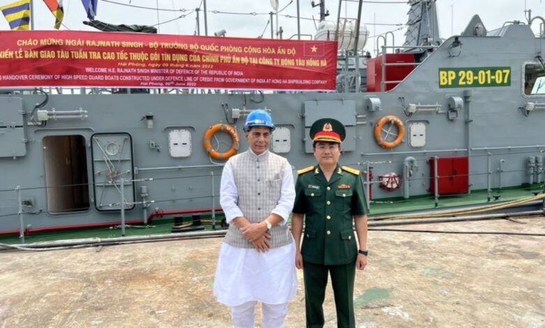 रक्षा मंत्री राजनाथ सिंह ने 10 करोड़ अमेरिकी डॉलर की लाइन ऑफ क्रेडिट के तहत निर्मित तीव्रगति की 12 रक्षक नौकाएं वियतनाम को सौंपीं