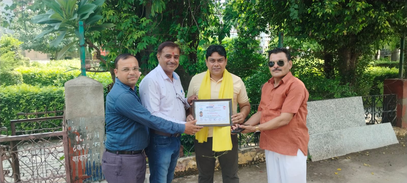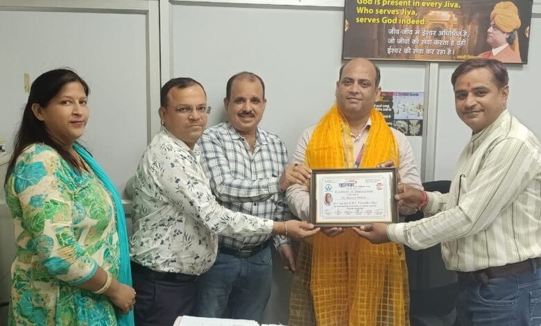 कानपुर( रीजनल एक्सप्रेस)। प्रतिवर्ष की भांति कलम एक स्वैच्छिक संस्था ने चिकित्सा में सेवा भाव रखने वाले चिकित्सकों को एक जुलाई, डॉक्टर डे के उपलक्ष्य में अंग वस्त्र एवं प्रशस्ति पत्र भेंट कर सम्मानित किया। डॉ0 डी पी शिव हरे, डॉ0 राहुल रंजन, डॉ0 नम्रता, डॉ0 नीतू पोरवार, डॉ विशाल गुप्ता, डॉ0 बी एन आचार्य, डॉ नितीश कुमार, डॉ रेशू अग्रवाल, डॉ0 विकास श्रीवास्तव, डॉ0 अनिल वैद्य, डॉ0 रीतिका जैन, डॉ0 नीरज वरयानी, डॉ यशोवर्धन, डॉ0 निखिल साहू, डॉ0 विनोद कुमार मिश्रा, डॉ श्वेता बाजपेई, डॉ0 वी के मिश्रा, डॉ0 अजय सचान को संस्था द्वारा अंगवस्त्र व प्रशस्ति पत्र देकर सम्मानित किया गया।